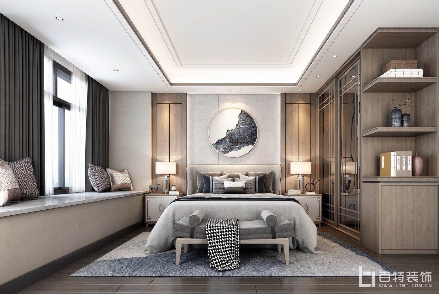 李女士新中式風(fēng)格入戶陽(yáng)臺(tái)、主臥效果圖
